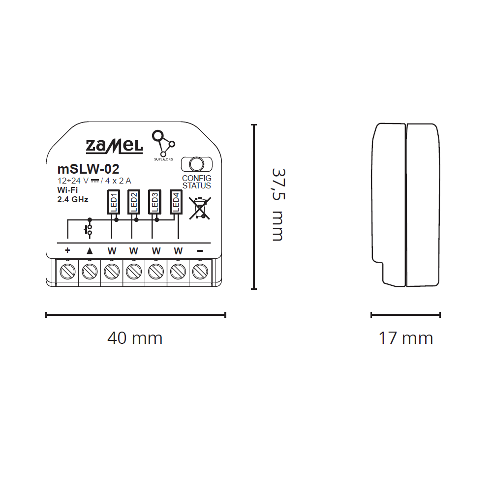 - 40×37.5x17mm méretű, Ø 60mm-es mély szerelvénydobozba is beépíthető
